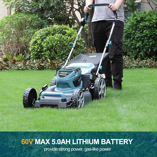 WESCO 60V 20-inch Battery Powered Push 3-in-1 Function, 7 Cutting Heights Walk-Behind Mower