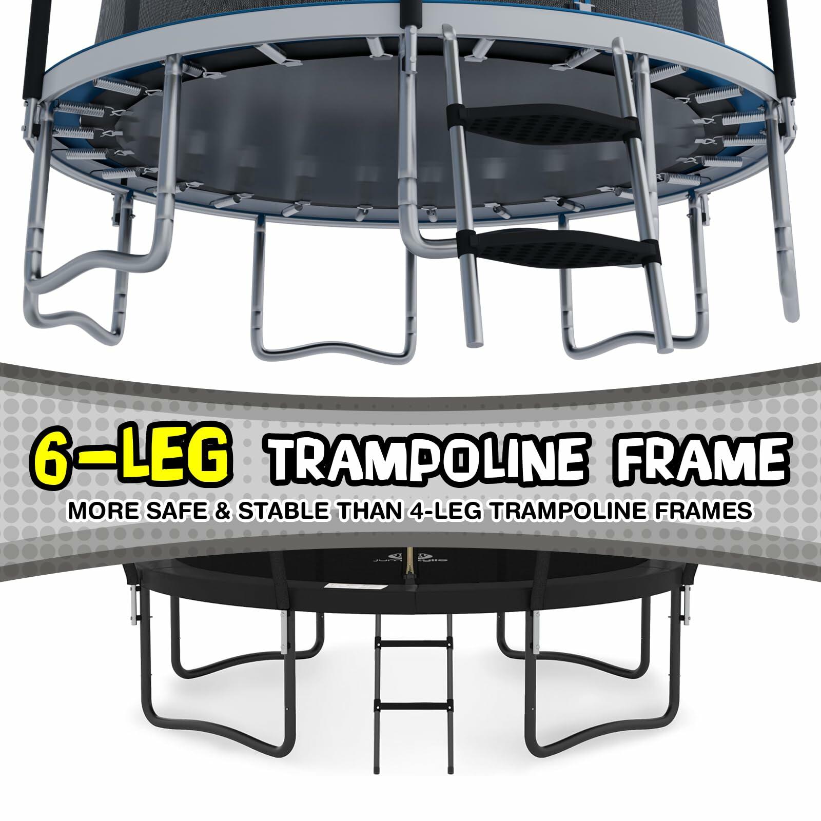 Make sure your children are bouncing safely while also staying active and having fun Trust that your kids are safe with our foam padded spring cover that prevents impact, contact, and entanglement. With a USA engineered TenCate Permatron jump mat that withstands over 5000 hours of UV testing and a rust-resistant galvanized steel frame, this trampoline is built to last. The 14 Foot Trampoline with AirDunk Basketball System by TruJump features a fun basketball system so your children can practice their dunking skills all year round. Buy yours today and start dunking like a pro